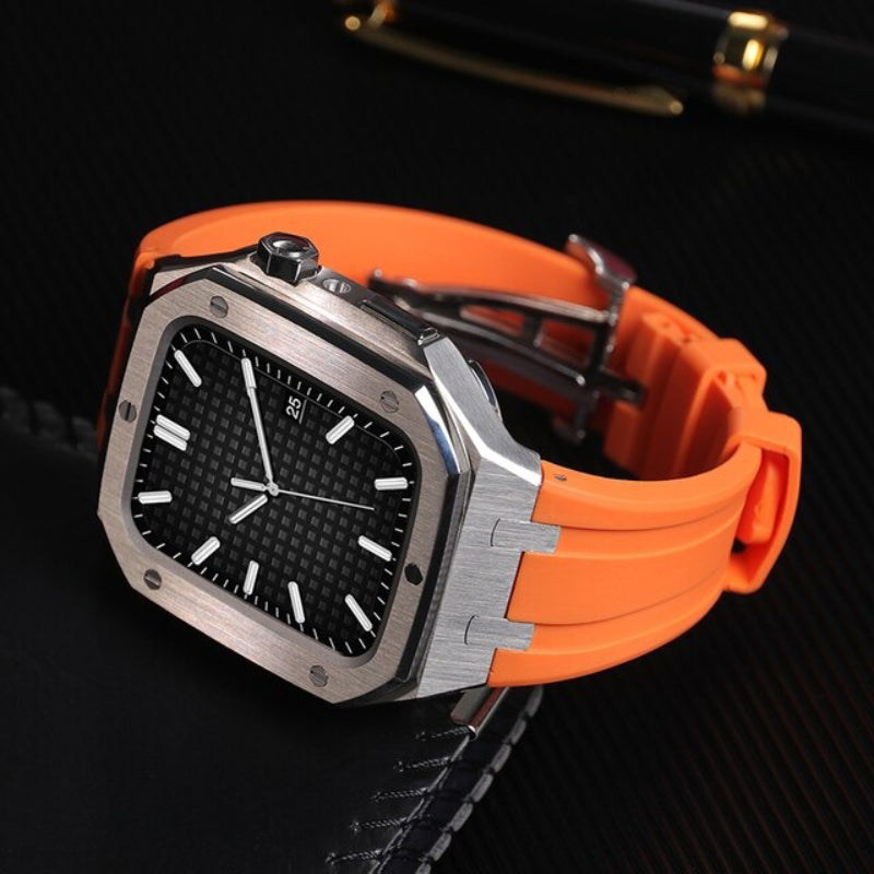 Revolutionize your Apple Watch experience with the Rubber Watch Band and Stainless Steel Case Kits by Inspire Watch!