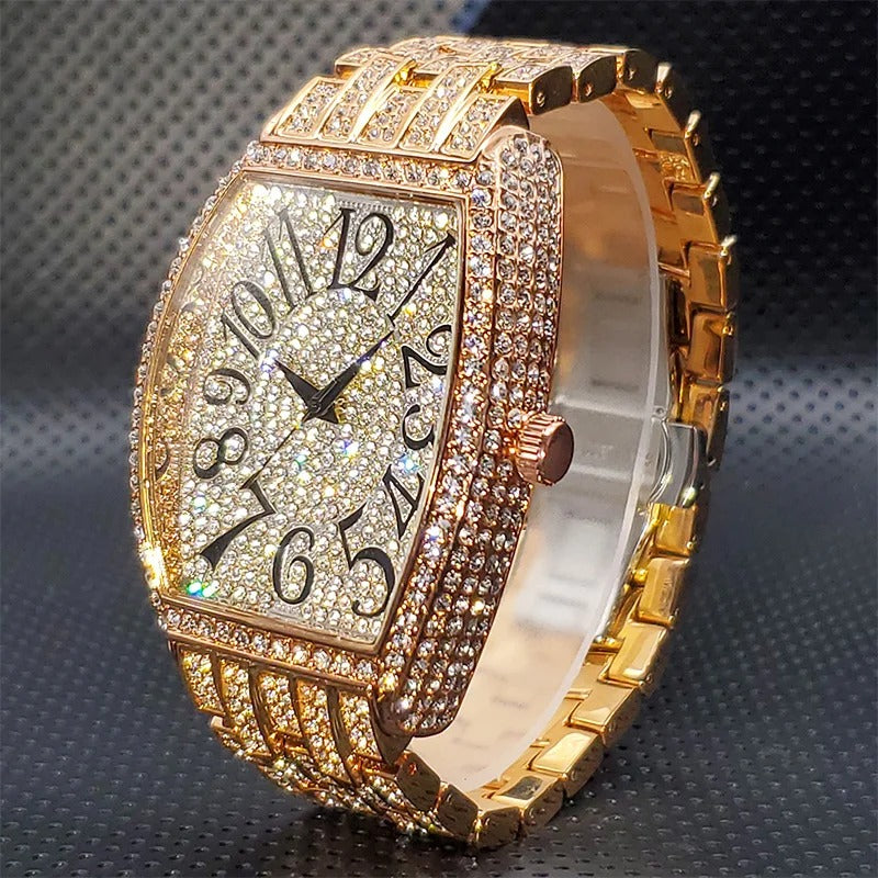 Sparkle Every Second with the Deluxe Tonneau Shape Rhinestone Watch!