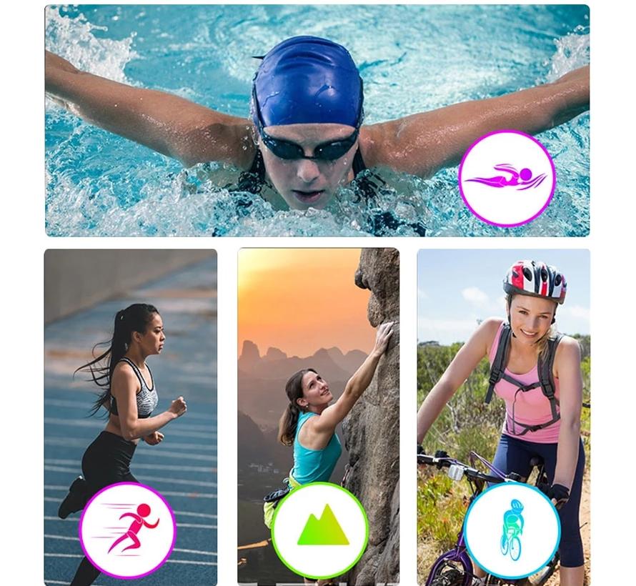 Multiple sports modes (walking, running, cycling, hiking, swimming);